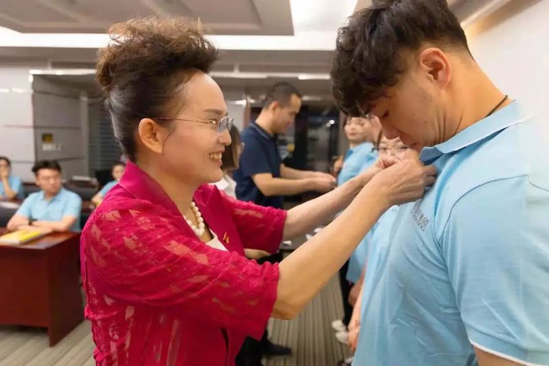 在儀式接近尾聲時,國芳集團的管理干部為我們新一屆的管理培訓生佩戴工卡,從此刻開始,國芳集團又加入了數十名新生力量。